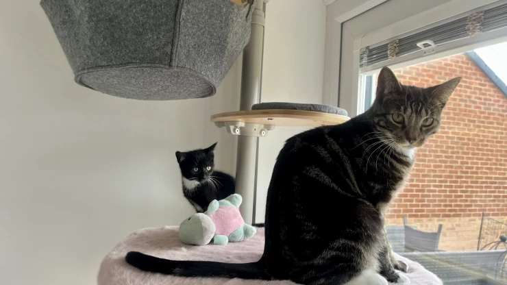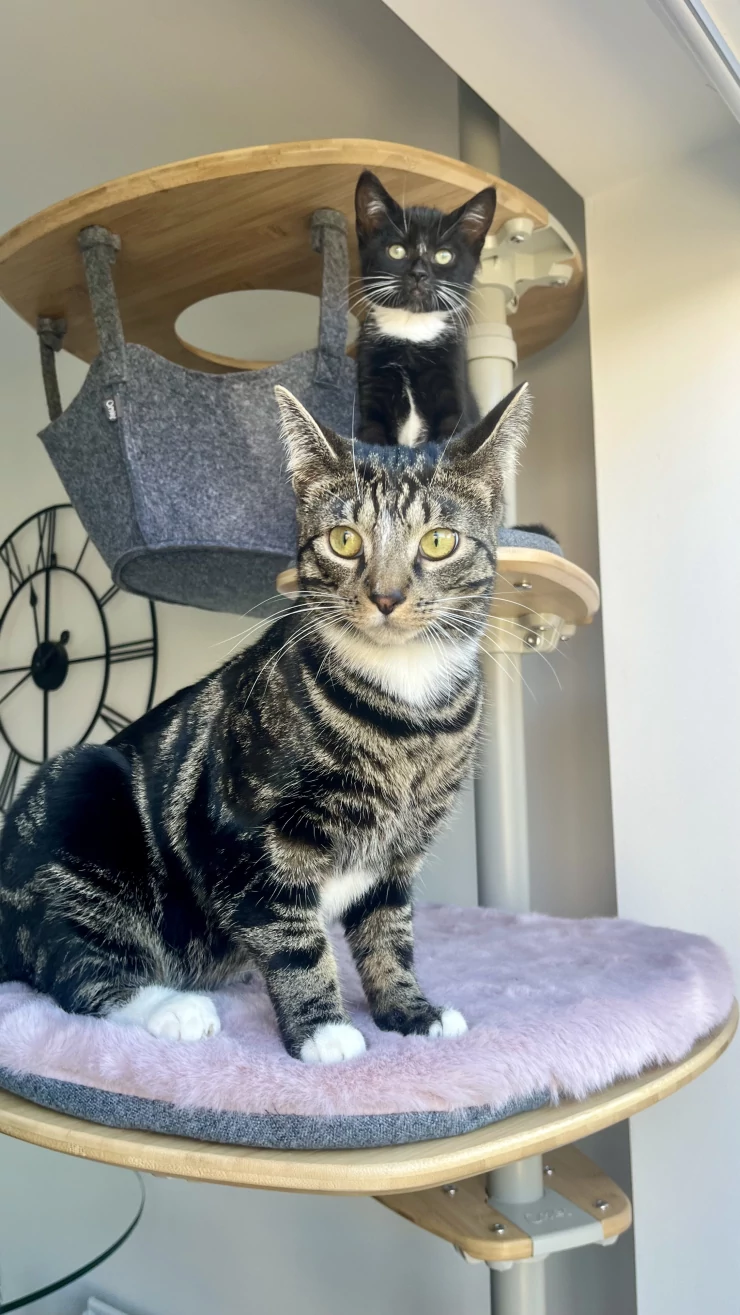 Titel: Mina kattungar älskar att vara uppe på denna plattform