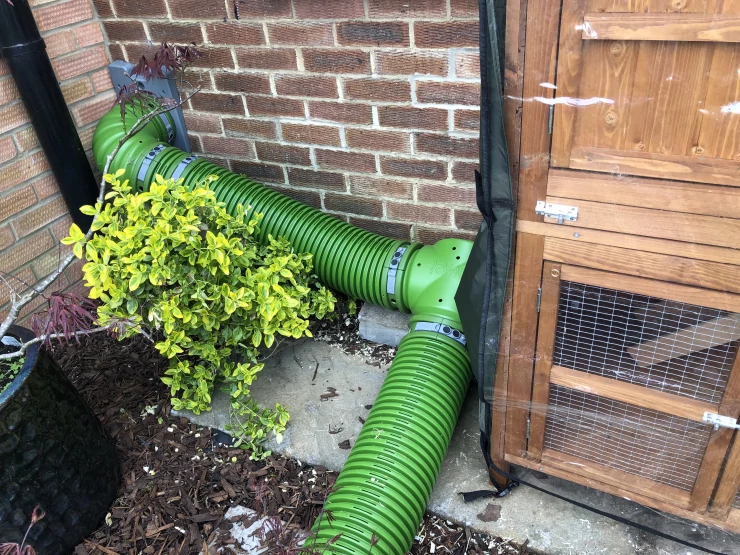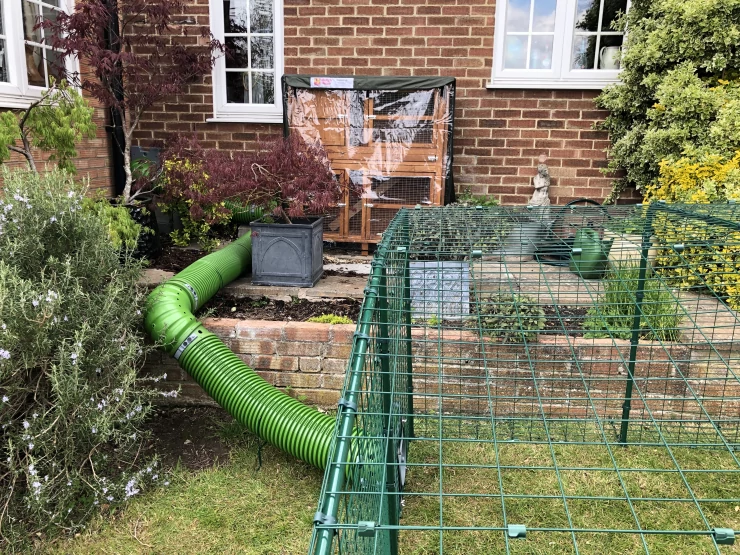 Titel: Vi använde en dörr för att ansluta till både kattlucka och hage och lade sedan till en t-sektion för att Go ner till en löpning på gräset.