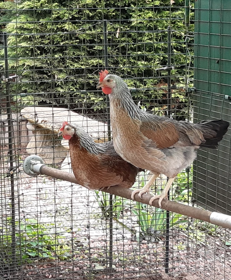 Titel: Hönorna älskar att hänga på hönsgungan.