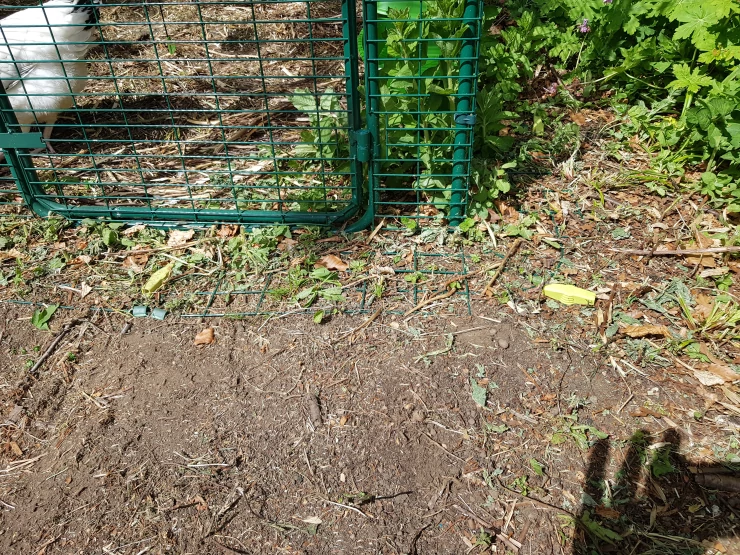 Titel: Marsvinen kommer ut ur sin nya t - sektion och in i hagen, de älskar att ha möjlighet att äta gräs på så många olika ställen nu!