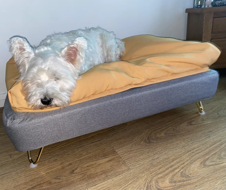 Titel: Bästa hundbädden jag har köpt han älskar det! jag har en stor westie så ett medium är Gott om utrymme för honom att sträcka ut. bra kvalitet! rekommenderas starkt!