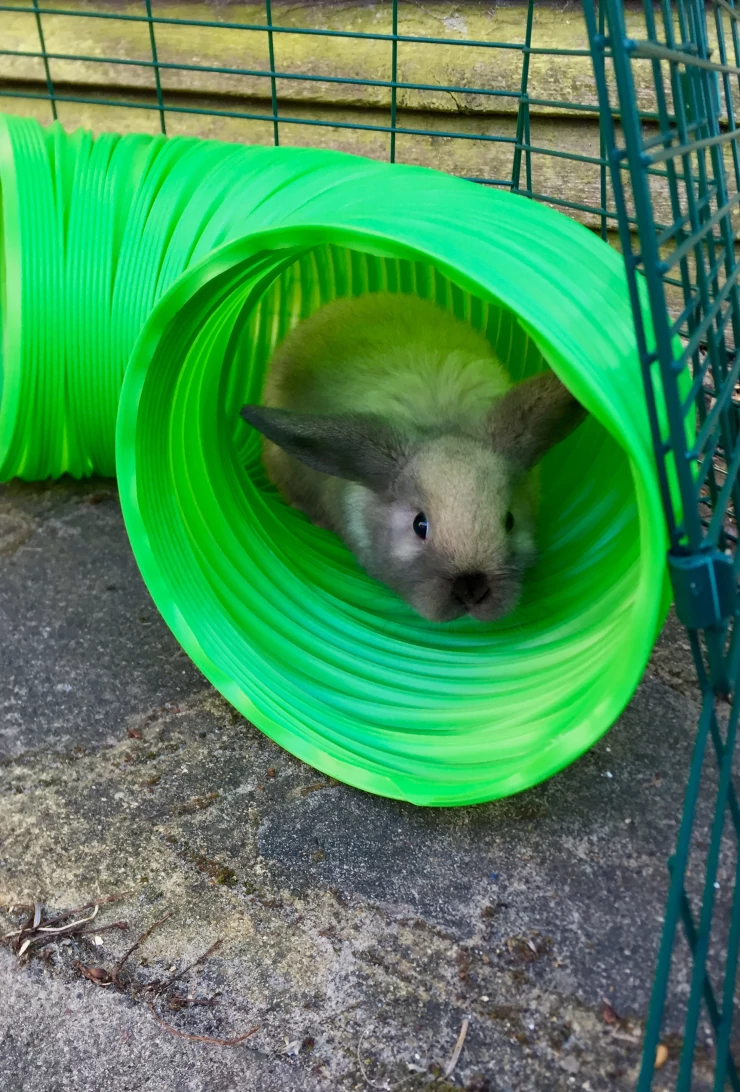 Titel: Phoebe älskar att leka i sin nya kaninhage!