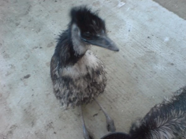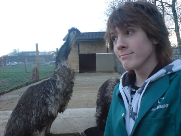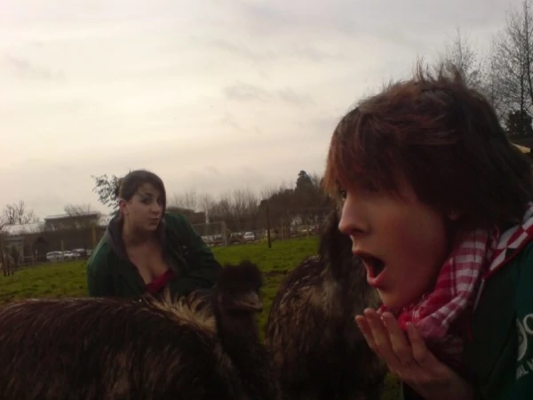 Titel: Det här är jag och min vän Becky som matar ut emu-erna.