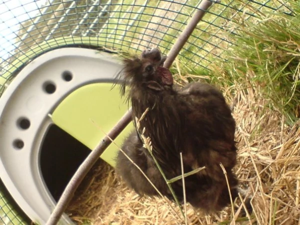 Titel: Silkie med humla. Jag kallade honom Sully, han är en ensam tupp nu när hans fru boo dog.